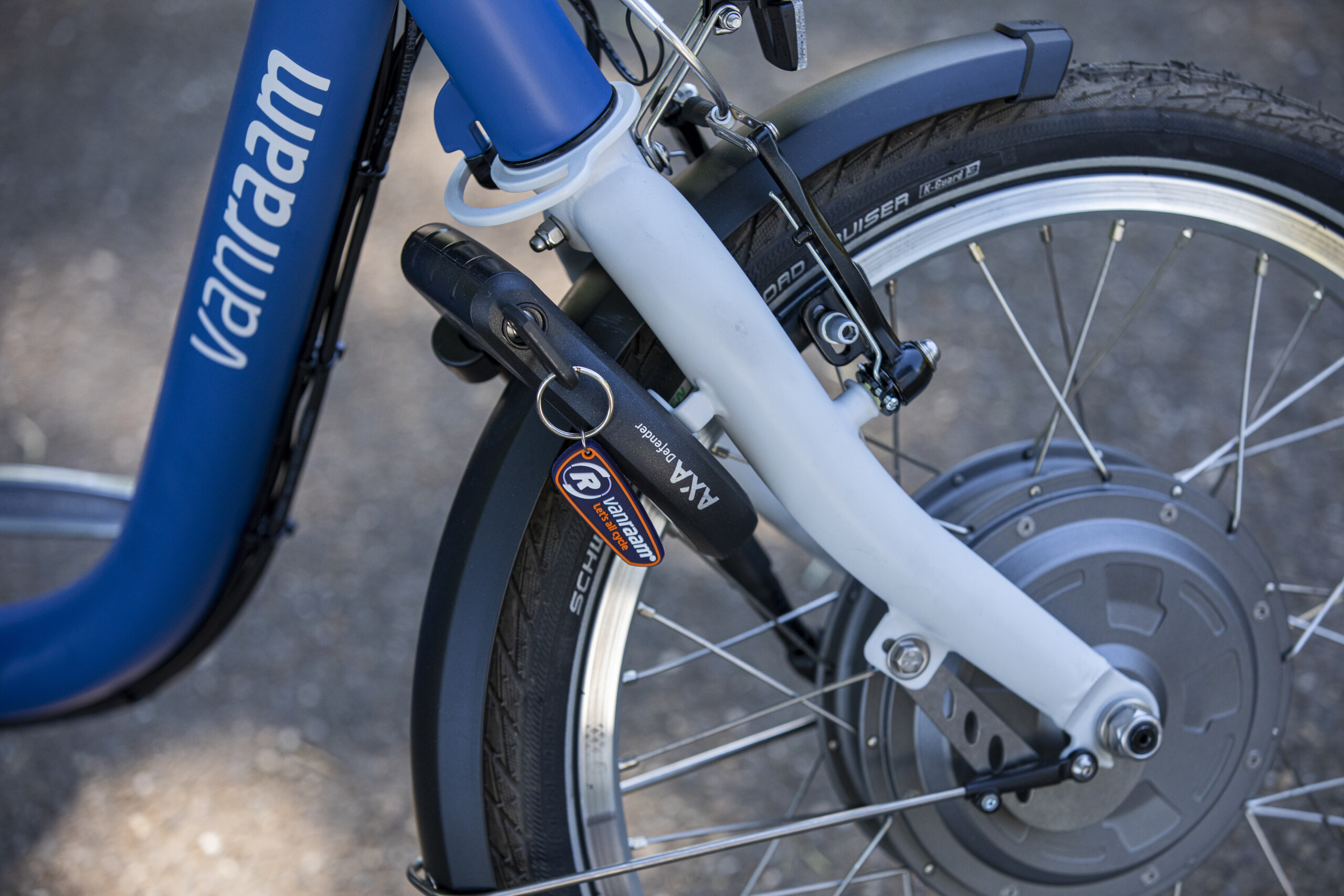Equipé d’un différentiel, d’une assistance au pédalage électrique programmable VAN RAAM et d’une roue libre à 8 vitesses ;